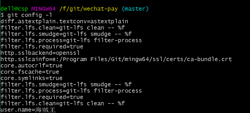 | #查看系统config git config --system --list #查看当前用户(global)配置 git config --global --list