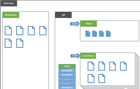 - Index / Stage:暂存区,用于临时存放你的改动,事实上它只是一个文件,保存即将提交到文件列表信息