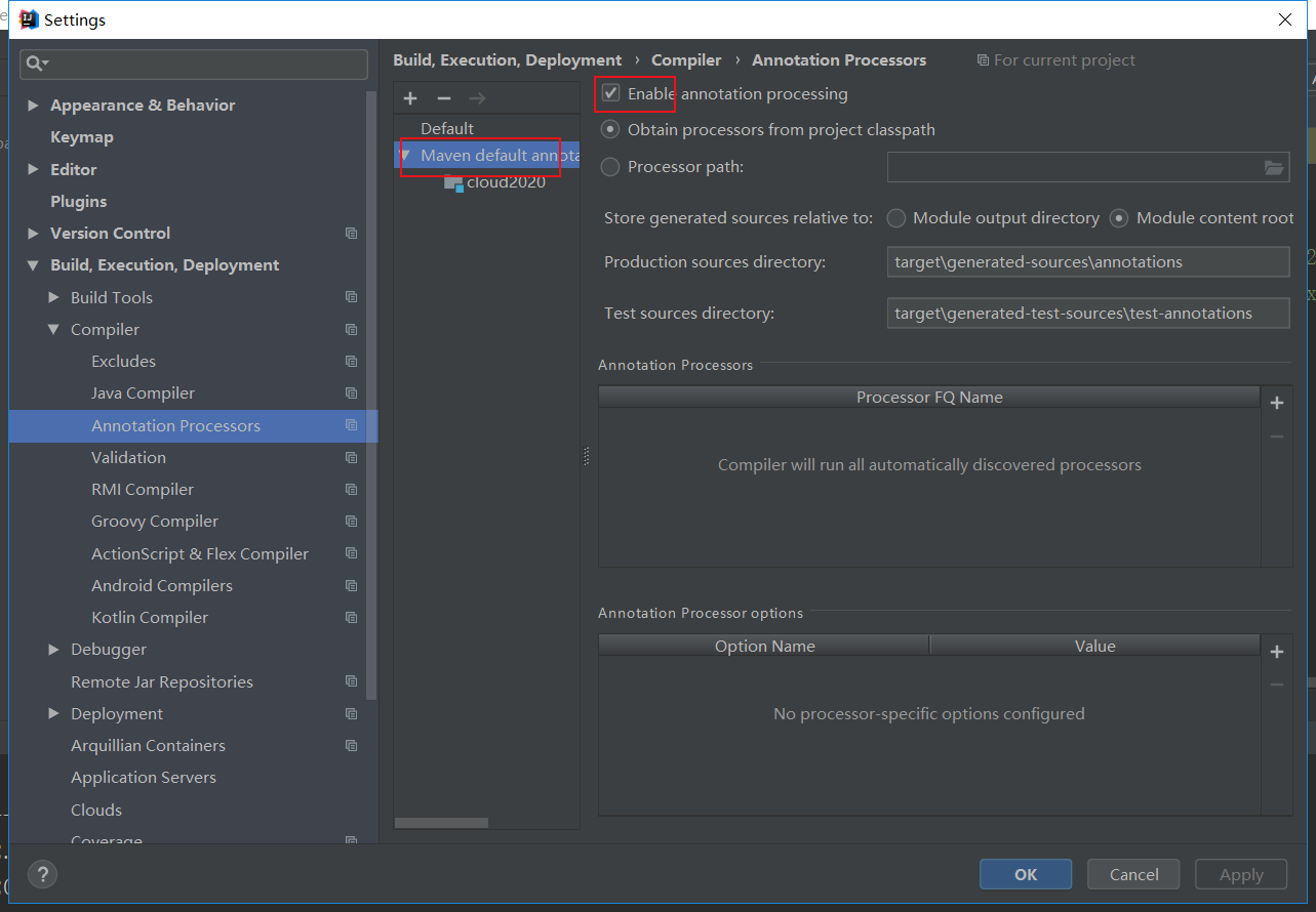 ; 父工程pom配置1 2 3 4 5 6 7 8 9 10 11 12 13 14 15 16 17 18 19 20 21 22 23 24 25 26 27 28 29 30 31 32 33 34 35 36 37 38 39 40 41 42 43 44 45 46 47 48 49 50 51 52 53 54 55 56 57 58 59 60 61 62 63 64 65 66 67 68 69 70 71 72 73 74 75 76 77 78 79 80 81 82 83 84 85 86 87 88 89 90 91 92 93 94 95 96 97 98 99 100 <project xmlns ="http://maven.apache.org/POM/4.0.0" xmlns:xsi ="http://www.w3.org/2001/XMLSchema-instance" xsi:schemaLocation ="http://maven.apache.org/POM/4.0.0 http://maven.apache.org/xsd/maven-4.0.0.xsd" > <modelVersion > 4.0.0modelVersion> <groupId > com.dkf.cloudgroupId> <artifactId > cloud2020artifactId> <version > 1.0-SNAPSHOTversion> <packaging > pompackaging> <properties > <project.build.sourceEncoding > UTF-8project.build.sourceEncoding> <maven.compiler.source > 1.8maven.compiler.source> <maven.compiler.target > 1.8maven.compiler.target> <junit.version > 4.12junit.version> <log4j.version > 1.2.17log4j.version> <lombok.version > 1.16.18lombok.version> <mysql.version > 5.1.47mysql.version> <druid.version > 1.1.16druid.version> <mybatis.spring.boot.version > 1.3.0mybatis.spring.boot.version> properties> <dependencyManagement > <dependencies > <dependency > <groupId > org.apache.maven.pluginsgroupId> <artifactId > maven-project-info-reports-pluginartifactId> <version > 3.0.0version> dependency> <dependency > <groupId > org.springframework.bootgroupId> <artifactId > spring-boot-dependenciesartifactId> <version > 2.2.2.RELEASEversion> <type > pomtype> <scope > importscope> dependency> <dependency > <groupId > org.springframework.cloudgroupId> <artifactId > spring-cloud-dependenciesartifactId> <version > Hoxton.SR1version> <type > pomtype> <scope > importscope> dependency> <dependency > <groupId > com.alibaba.cloudgroupId> <artifactId > spring-cloud-alibaba-dependenciesartifactId> <version > 2.1.0.RELEASEversion> <type > pomtype> <scope > importscope> dependency> <dependency > <groupId > mysqlgroupId> <artifactId > mysql-connector-javaartifactId> <version > ${mysql.version}version> <scope > runtimescope> dependency> <dependency > <groupId > com.alibabagroupId> <artifactId > druidartifactId> <version > ${druid.version}version> dependency> <dependency > <groupId > org.mybatis.spring.bootgroupId> <artifactId > mybatis-spring-boot-starterartifactId> <version > ${mybatis.spring.boot.version}version> dependency> <dependency > <groupId > junitgroupId> <artifactId > junitartifactId> <version > ${junit.version}version> dependency> <dependency > <groupId > log4jgroupId> <artifactId > log4jartifactId> <version > ${log4j.version}version> dependency> dependencies> dependencyManagement> <build > <plugins > <plugin > <groupId > org.springframework.bootgroupId> <artifactId > spring-boot-maven-pluginartifactId> <configuration > <fork > truefork> <addResources > trueaddResources> configuration> plugin> plugins> build> project>