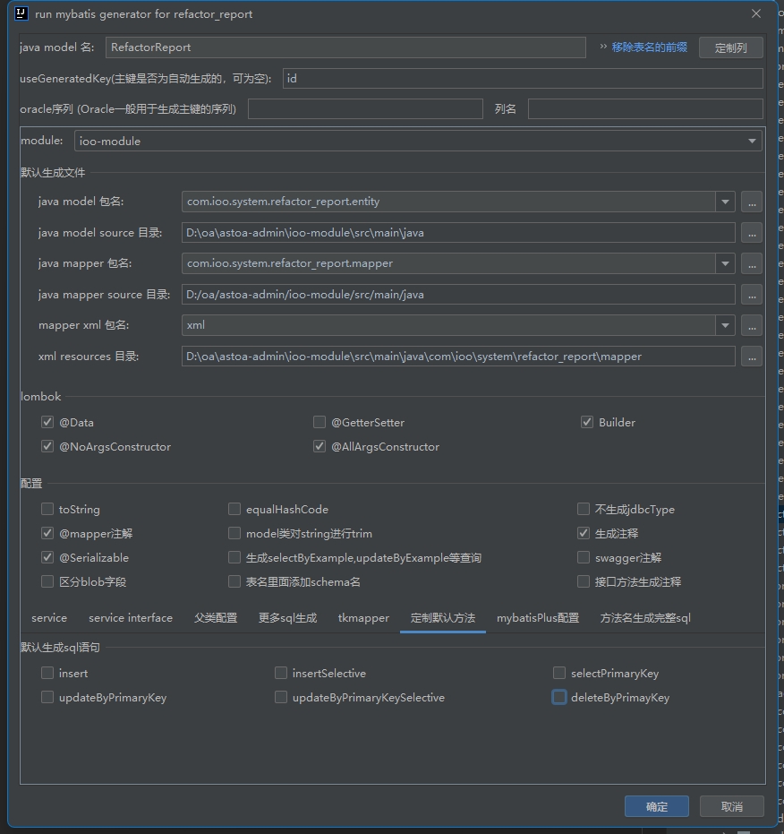MyBatisCodeHelperPro生成代码 MyBatisCodeHelperPro安装参考 破解版的可能会有一点问题,不用的时候可以在:文件-设置-插件-已安装插件中搜索MyBatisCodeHelperPro生成代码,然后禁用,要用的时候再启用 MyBatisCodeHelperPro生成代码更换电脑后重新激活1.选择 tool -> MybatisCodeHelper -> Activation 2.离线激活(激活码可以随便填) 代码生成